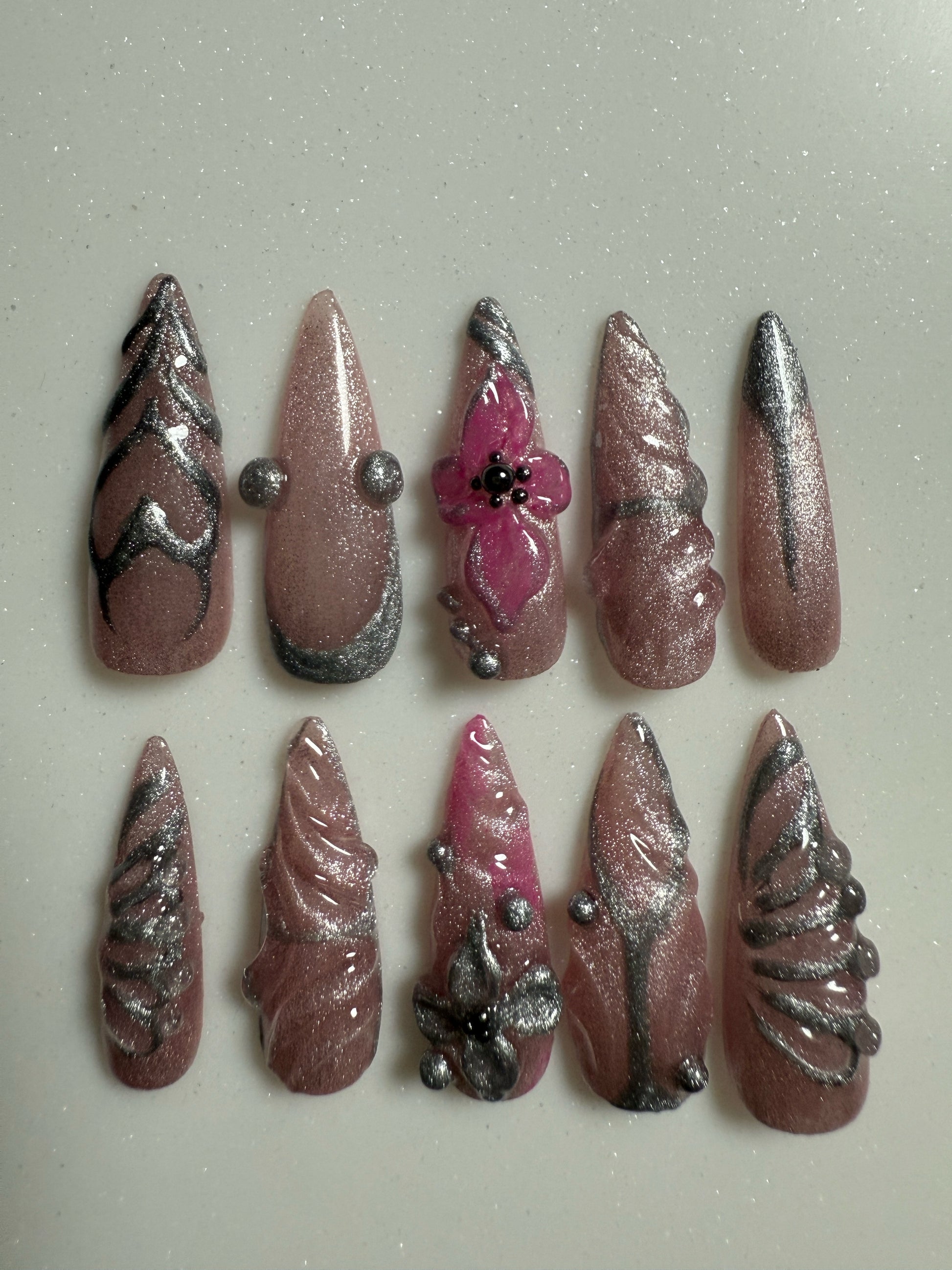 LACQUER LUXURY™ 'SKULL PANDA' SKULL PANDA IS INSPIRED BY A RARE COLLISION OF DARK MYTH AND URBAN EDGE, WHERE CLASSIC SKULL ICONOGRAPHY MEETS THE QUIRKY ALLURE OF PANDA CULTURE. THIS SET BLENDS GRITTY STREET STYLE WITH A CONTEMPORARY VIBE, FEATURING TEXTURED DETAILS, SHARP ACCENTS, AND A HINT OF MISCHIEF. IT'S A NAIL SET THAT PUSHES BOUNDARIES AND DEFINES A NEW WAVE OF TRENDY, REBELLIOUS COOL.